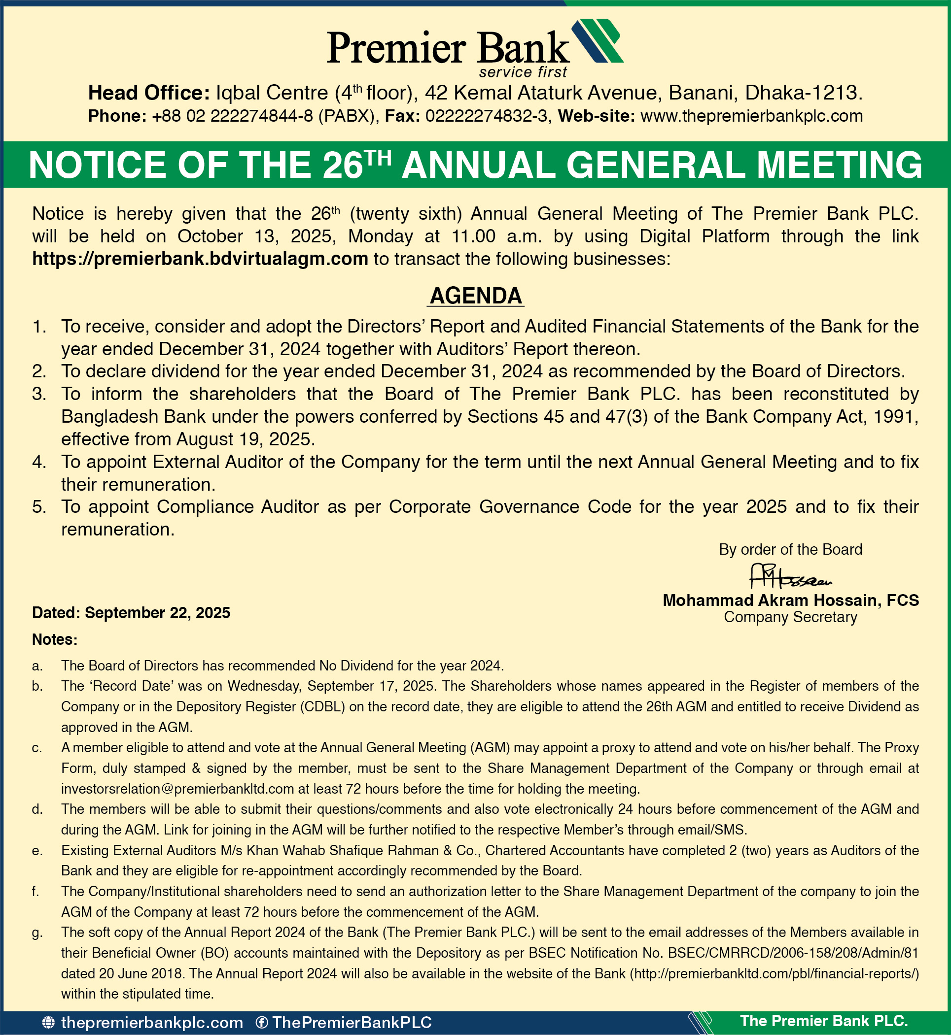 · PSI regarding consent of Bangladesh Bank to declare dividend